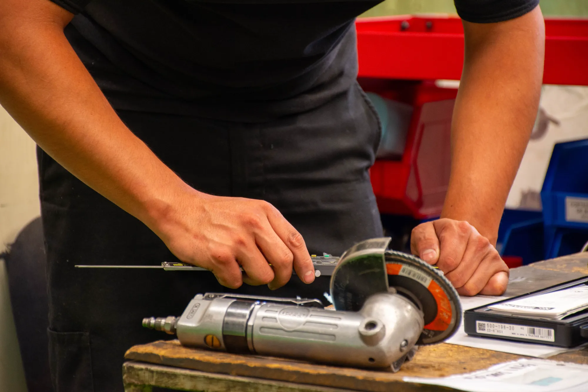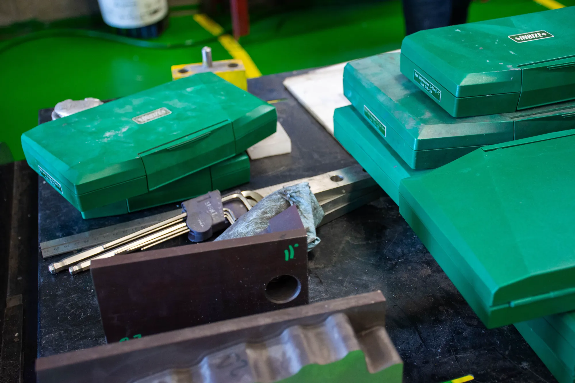 Precision measurement with digital micrometers, durometers, and gauges.